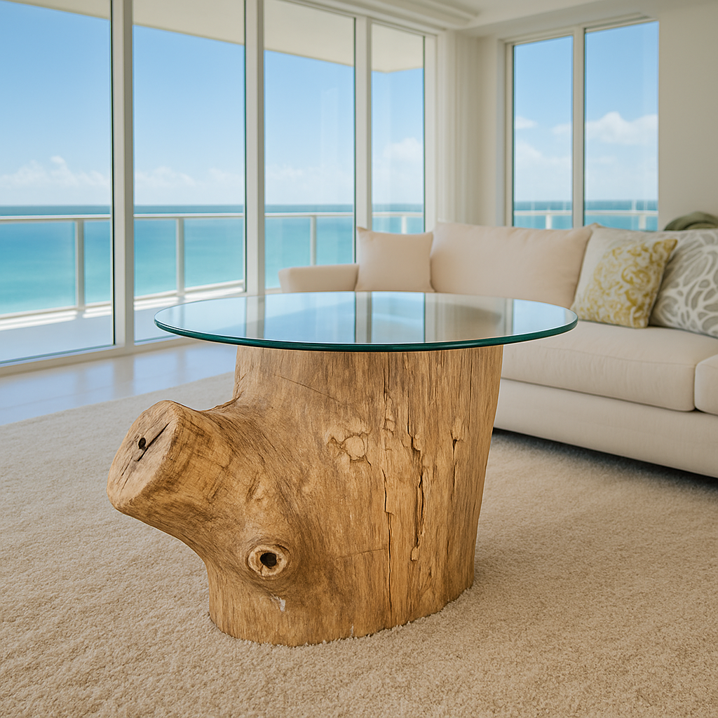 The Forest Root is a rustic yet refined statement piece, crafted from a solid natural wood base topped with smooth glass. Weighing 60 pounds and measuring 20” L × 25” W × 25” H, this handcrafted table combines the raw strength of the forest with a touch of modern elegance.